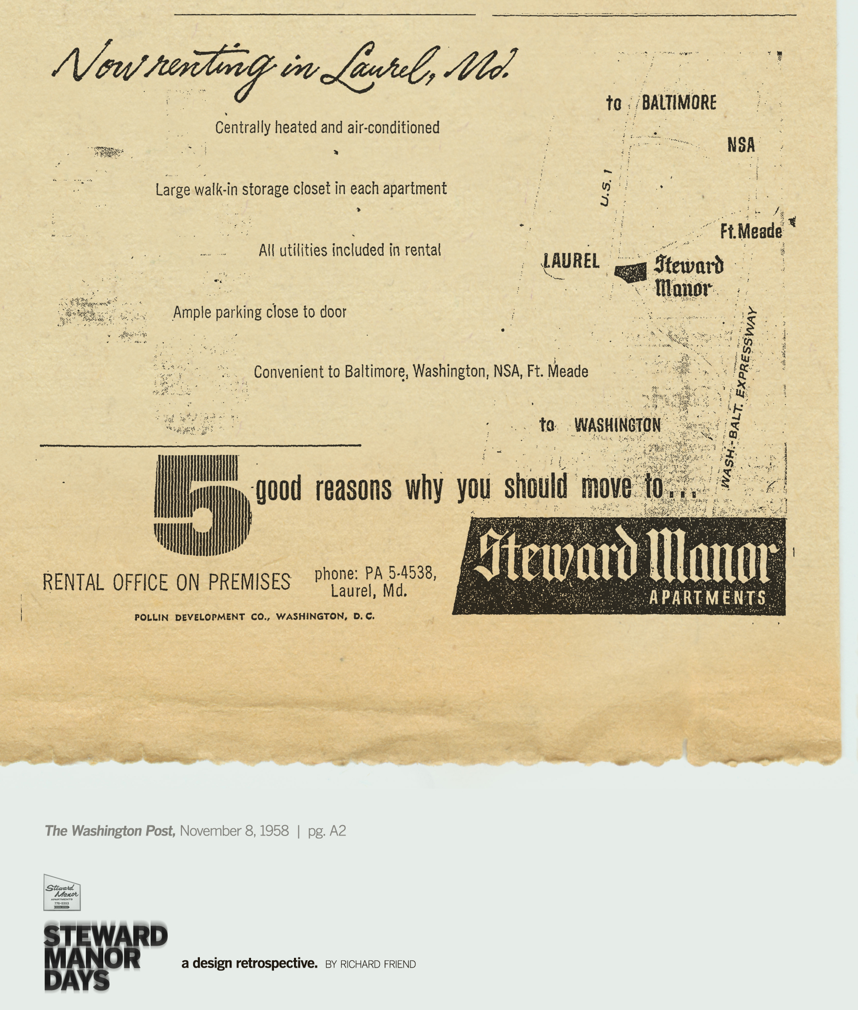Now based in Northern Virginia, I’m a graphic designer whose interest in Laurel’s retail history began while documenting life in the modest neighborhood where I lived from 1978 to 1987, Steward Manor Apartments.