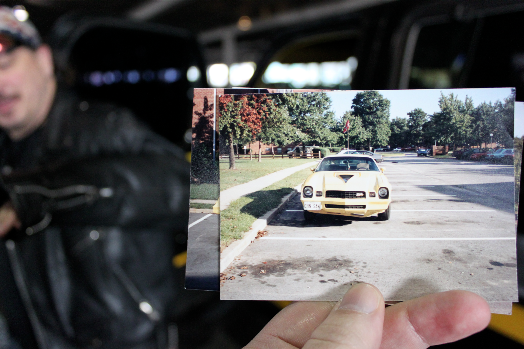 Within minutes of parking in the lower level garage area, we heard a familiar roar. Thankfully, it wasn’t the upper level collapsing; it was another old friend arriving. Jimmy Smith, driving a custom pickup truck that holds the engine from his old Chevy Camaro—the car in which he used to cruise this very parking lot in the 1980s.