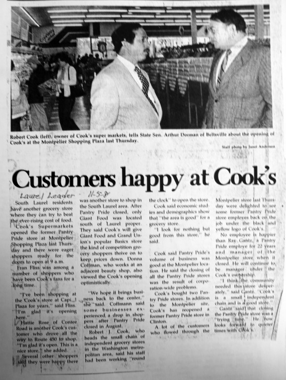 In a Washington Post article that noted the impending closure, owner Bob Cook—a longtime member and president of the Laurel Board of Trade—regretted shuttering the old hardware store that bore his name, but he remained surprisingly optimistic for the town: