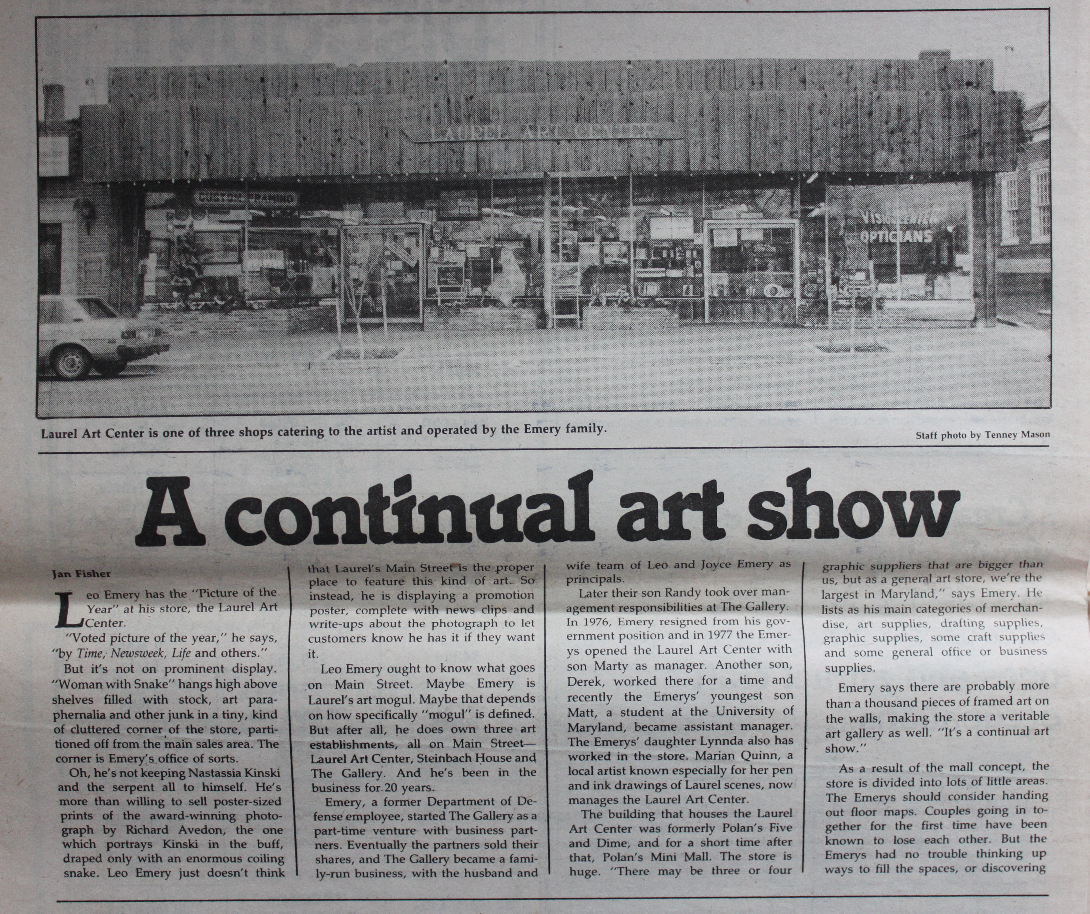 In the meantime, I began to take note of some of the other photos he was selling—photos that in a roundabout way, captured images of the Laurel, MD I used to know. Behind the firetrucks were long-gone storefronts from Laurel Shopping Center… the old Fair Lanes bowling alley sign… and a number of stunning photos from the very first Main Street Festival in 1981. I eagerly bought these, as well; and in effect, they turned out to be the inspiration for starting Lost Laurel. You’ve undoubtedly seen these photos throughout the blog and Facebook page.