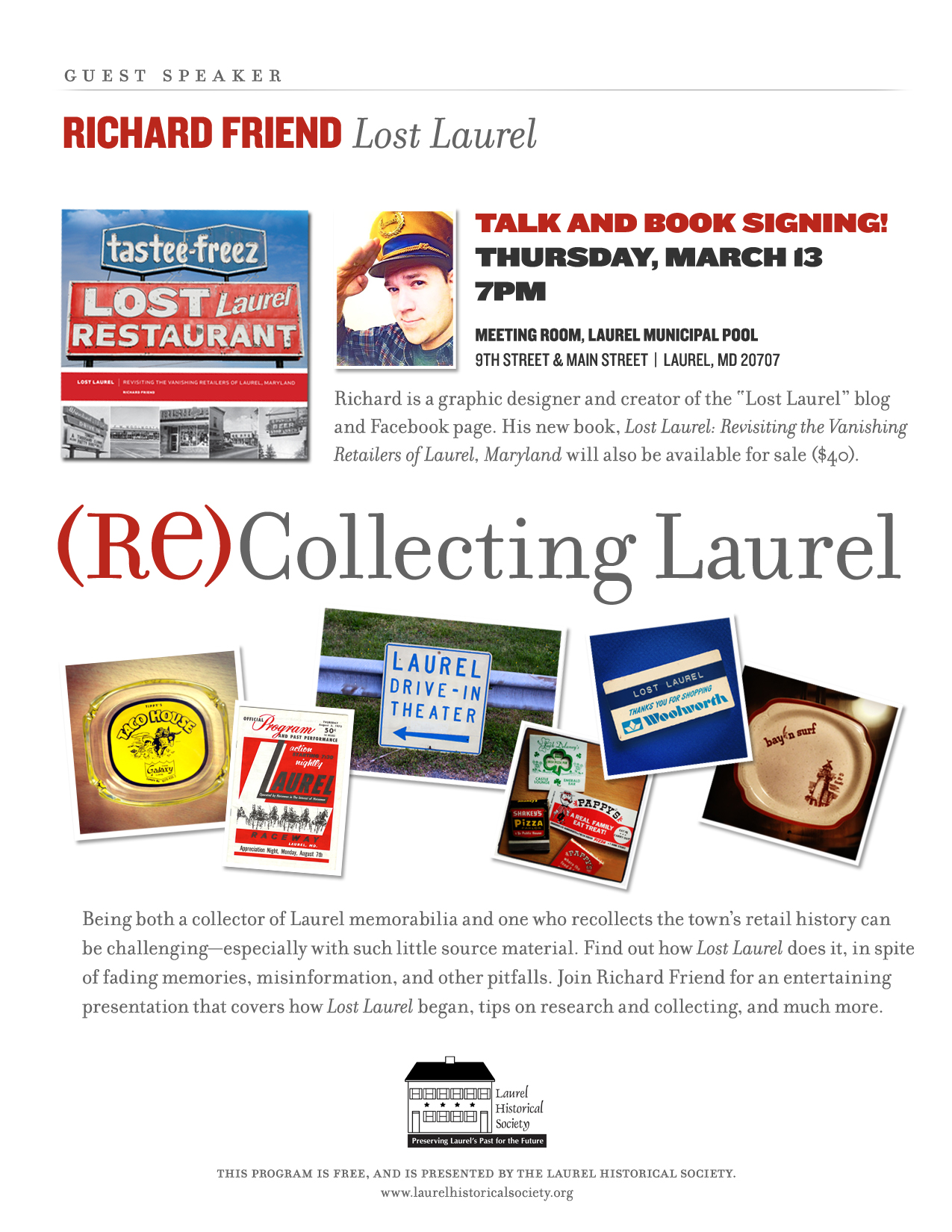 The Laurel Museum will also be open that night from 6–7, and their gift shop has the remaining supply of Lost Laurel books for anyone wishing to buy extra copies. They also have exhibit posters available in two sizes, and designed by yours truly! I’ll be on hand Thursday night, signing copies. Stop by and say hello!