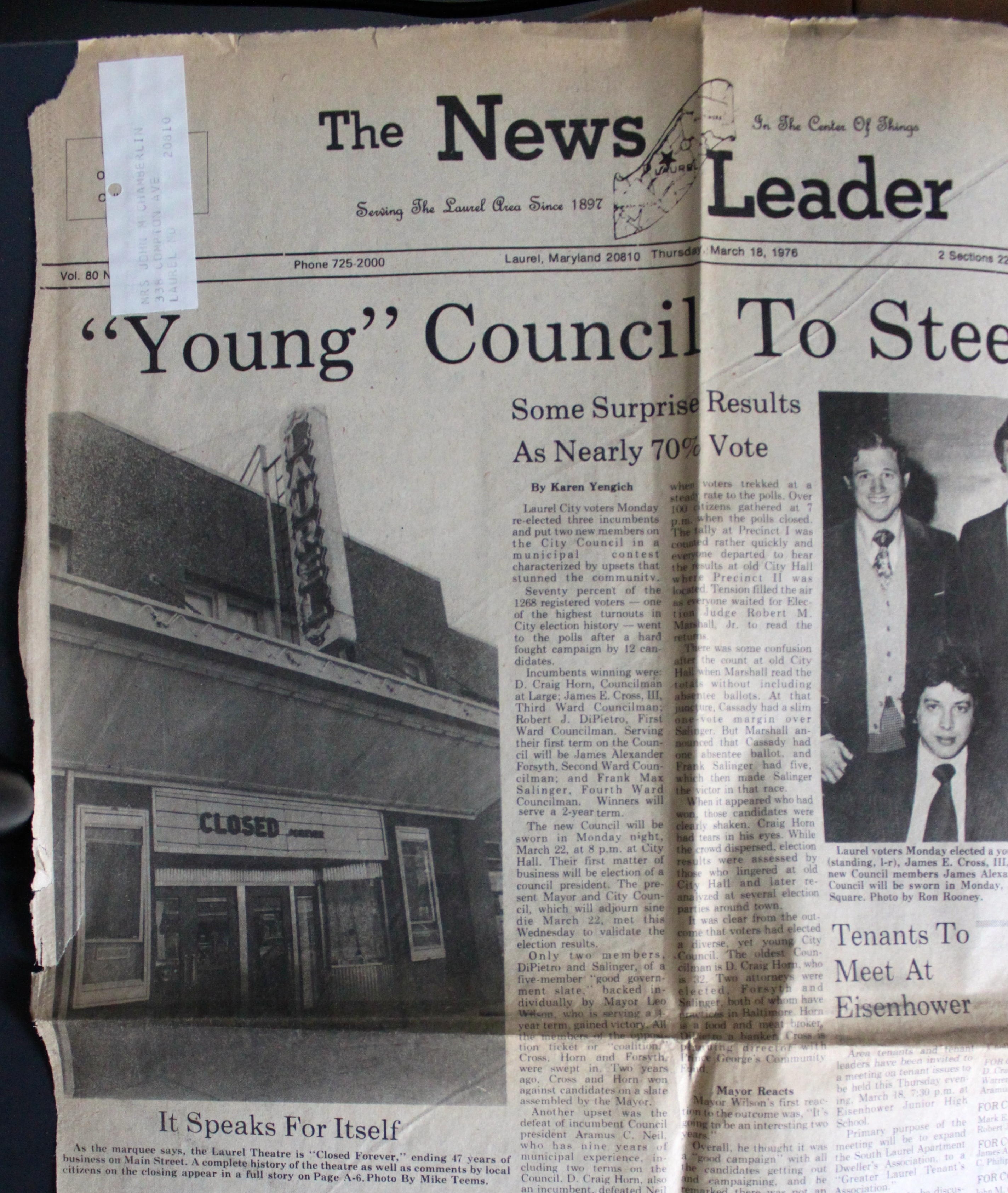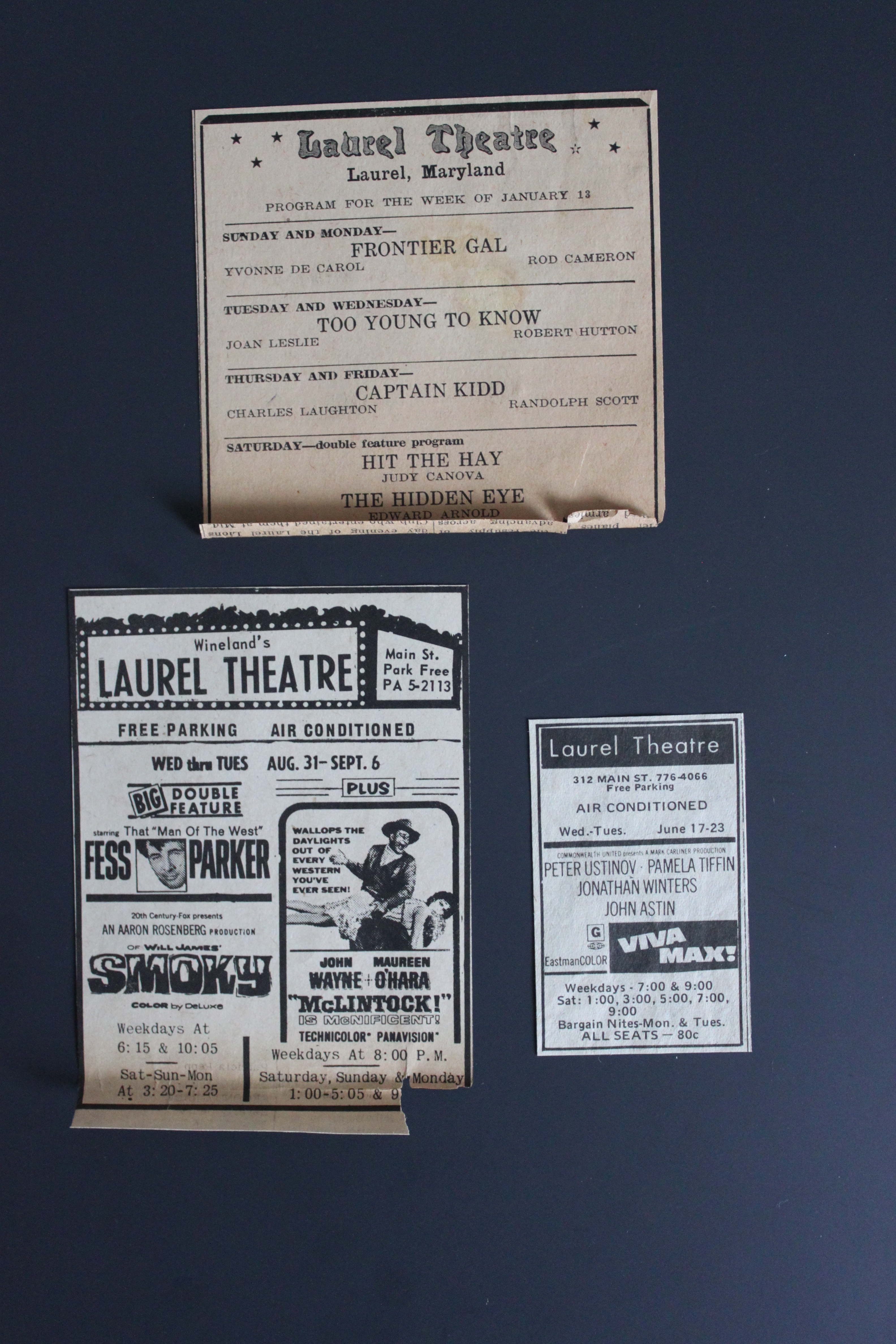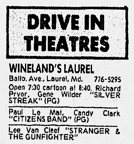 The theater was Laurel’s first and only movie house until the summer of 1966, when both Wineland’s Laurel Drive-In and Laurel Cinema opened at Laurel Shopping Center. The newer venues (and a minor fire in 1975) took their toll; and in 1976, the iconic Main Street theater called it quits.