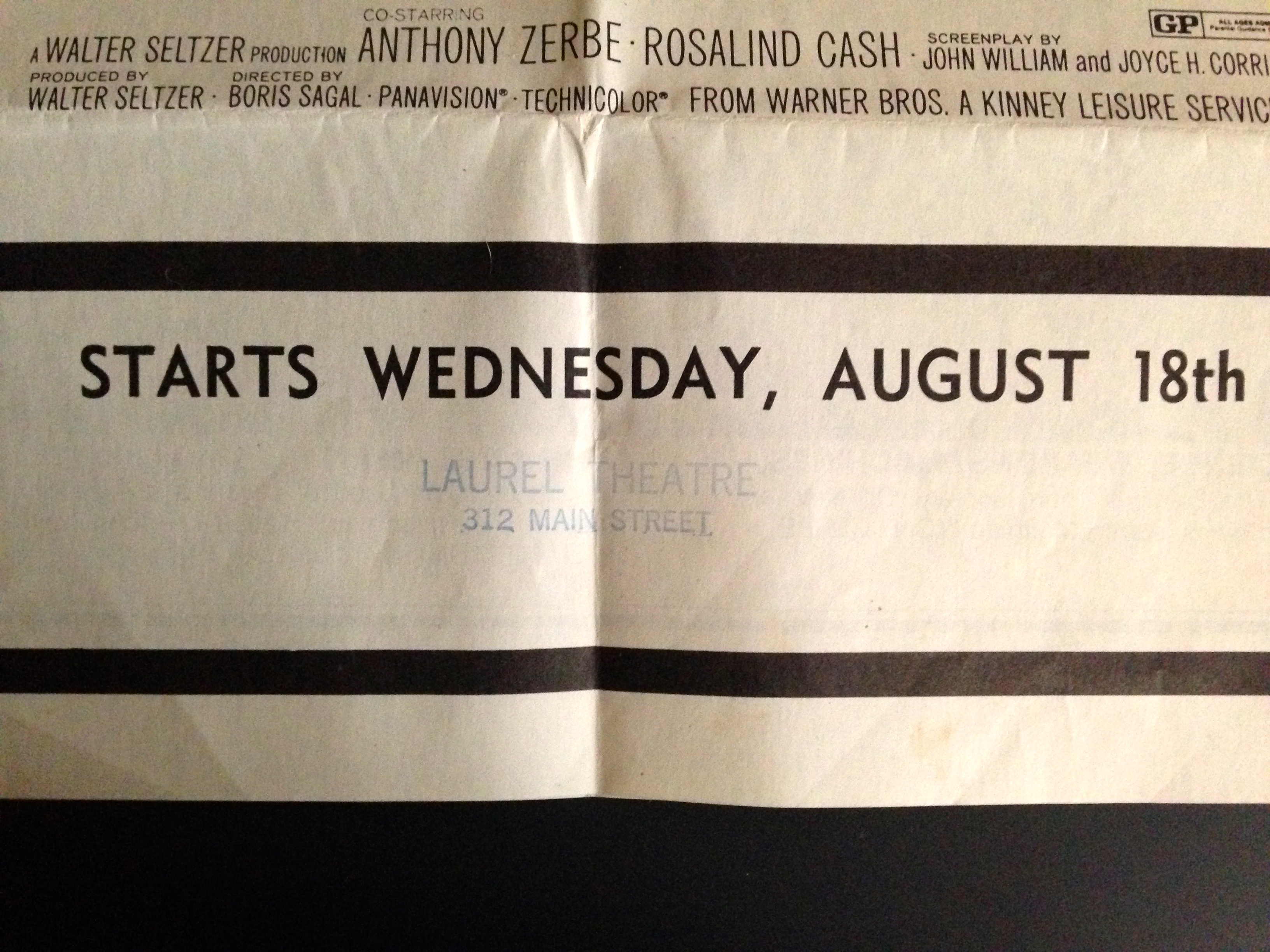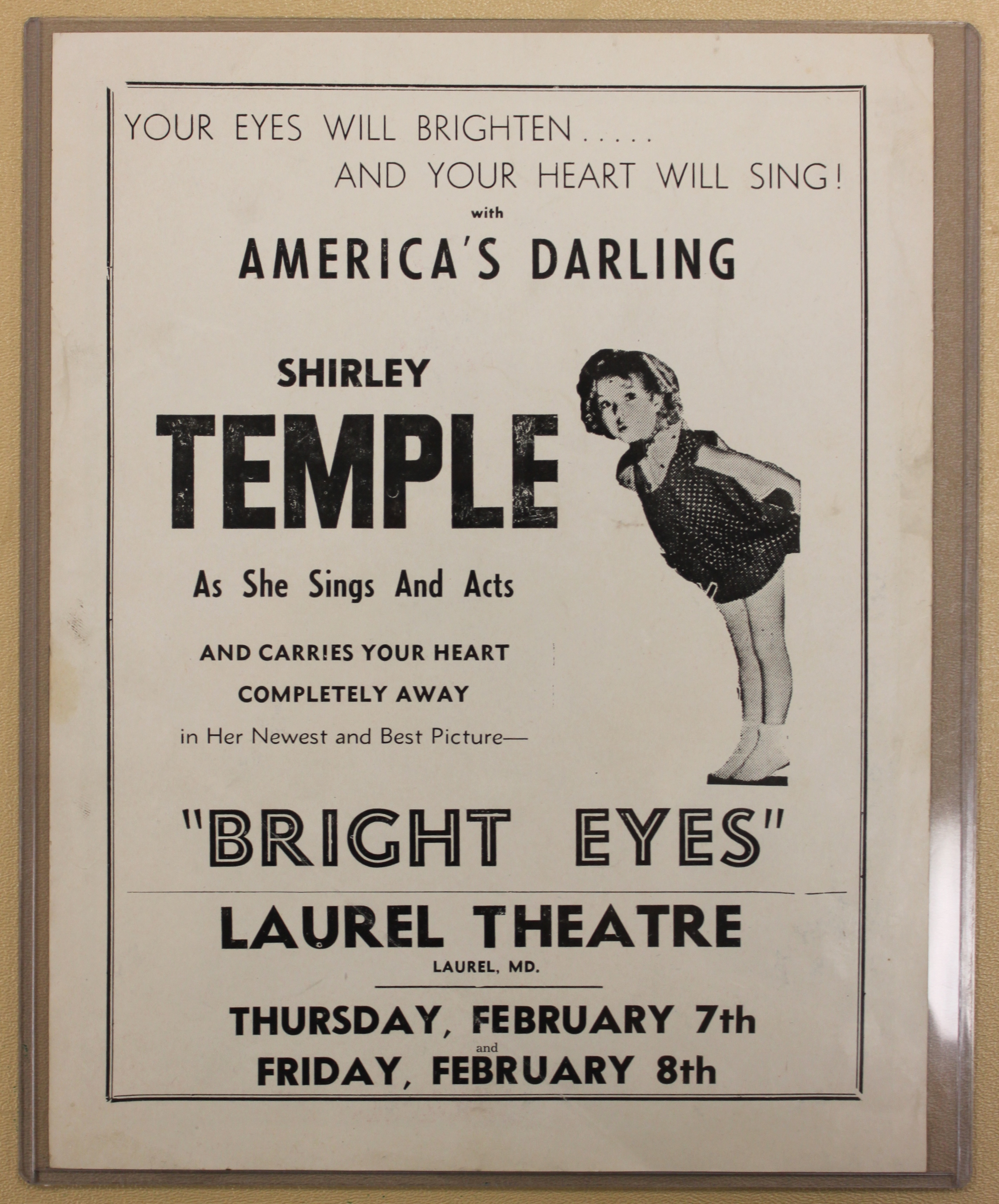In fact, according to the Laurel, Maryland Centennial Souvenir Historical Booklet, the Laurel Theatre opened on October 16, 1929 under Sidney B. Lust, and was built by C. Ernest Nichols. The first film shown was Noah’s Ark. It briefly closed in 1948 to undergo a renovation, at which point it reopened with The Mating of Millie. (Box Office magazine, September 4, 1948).