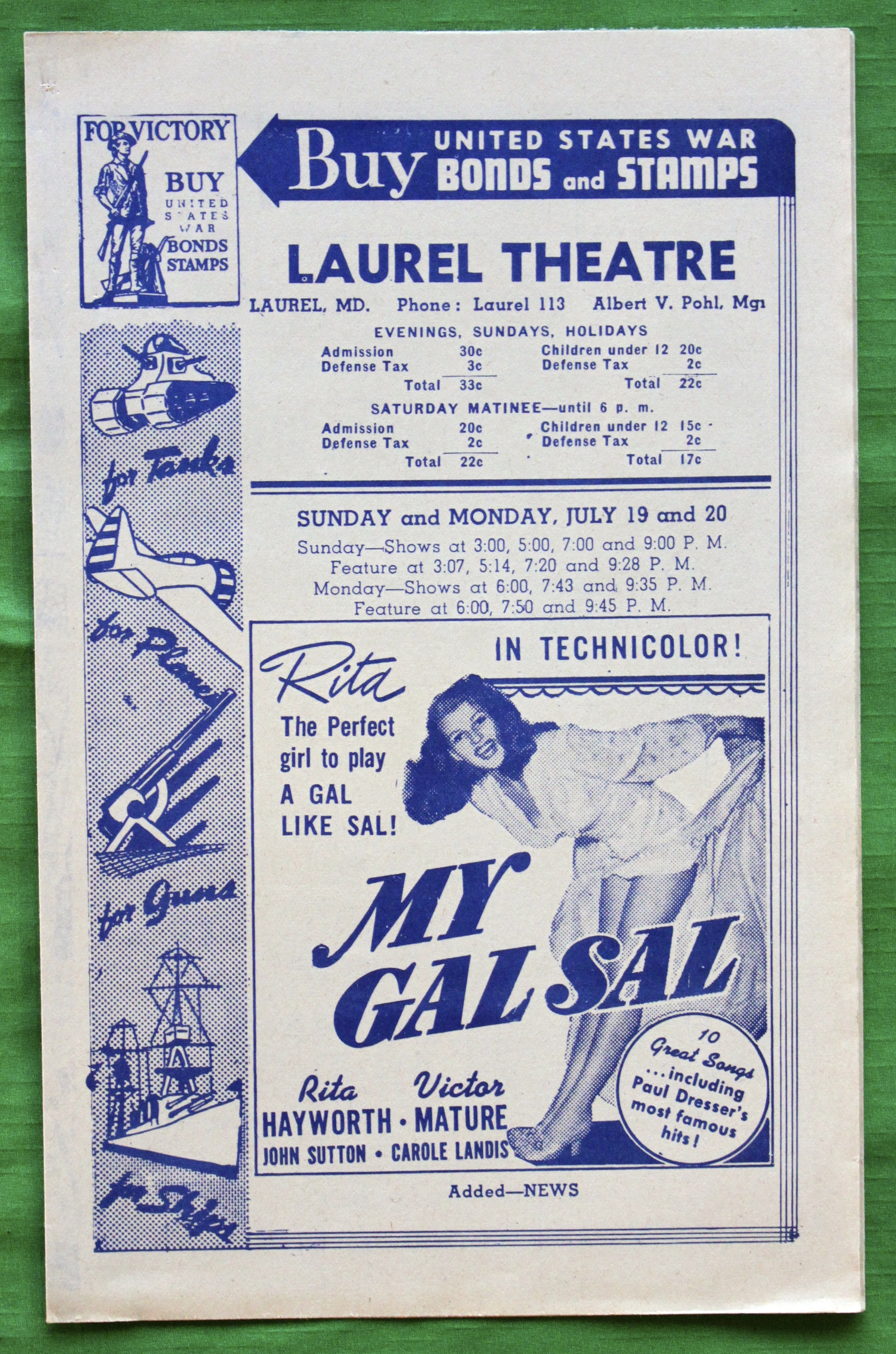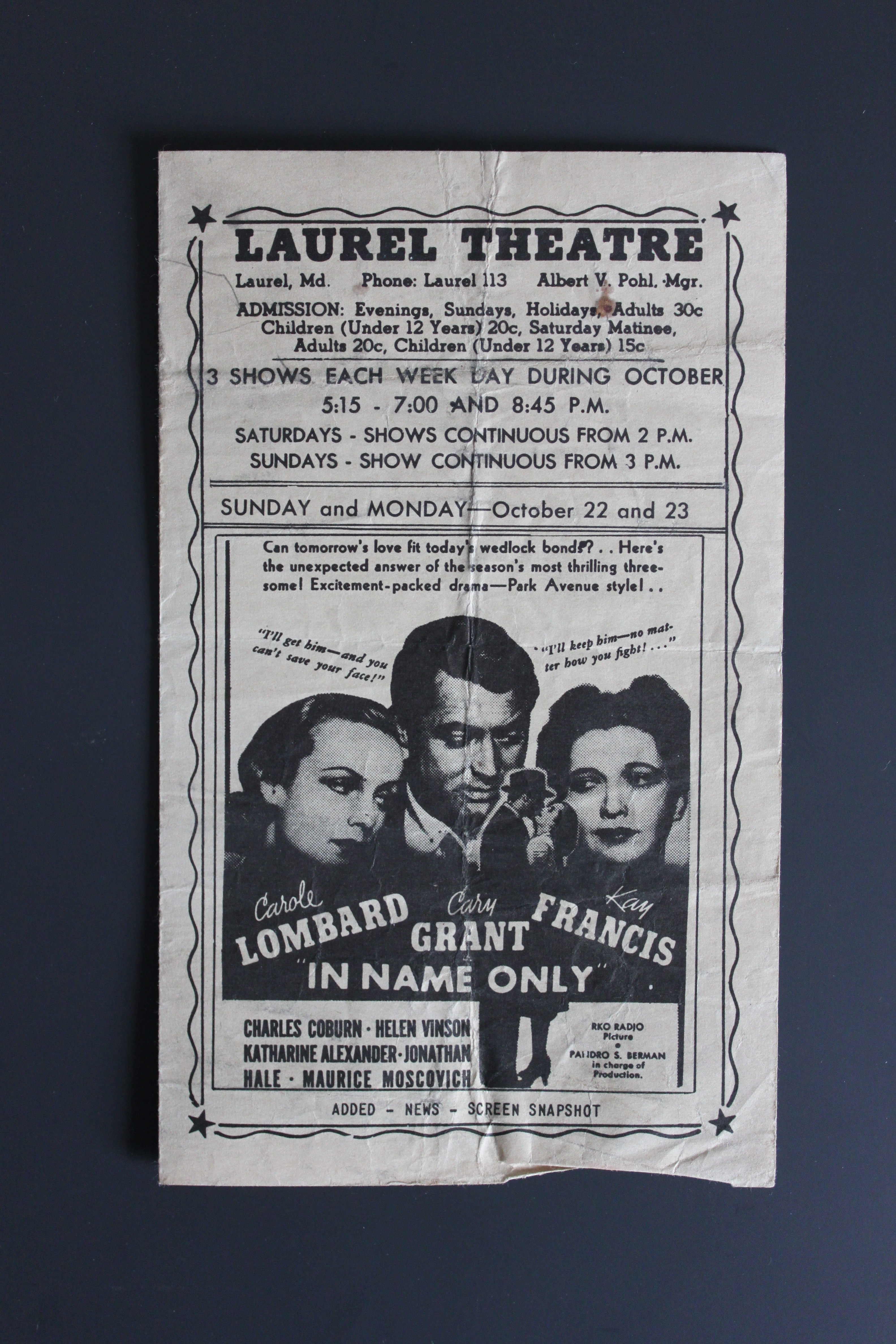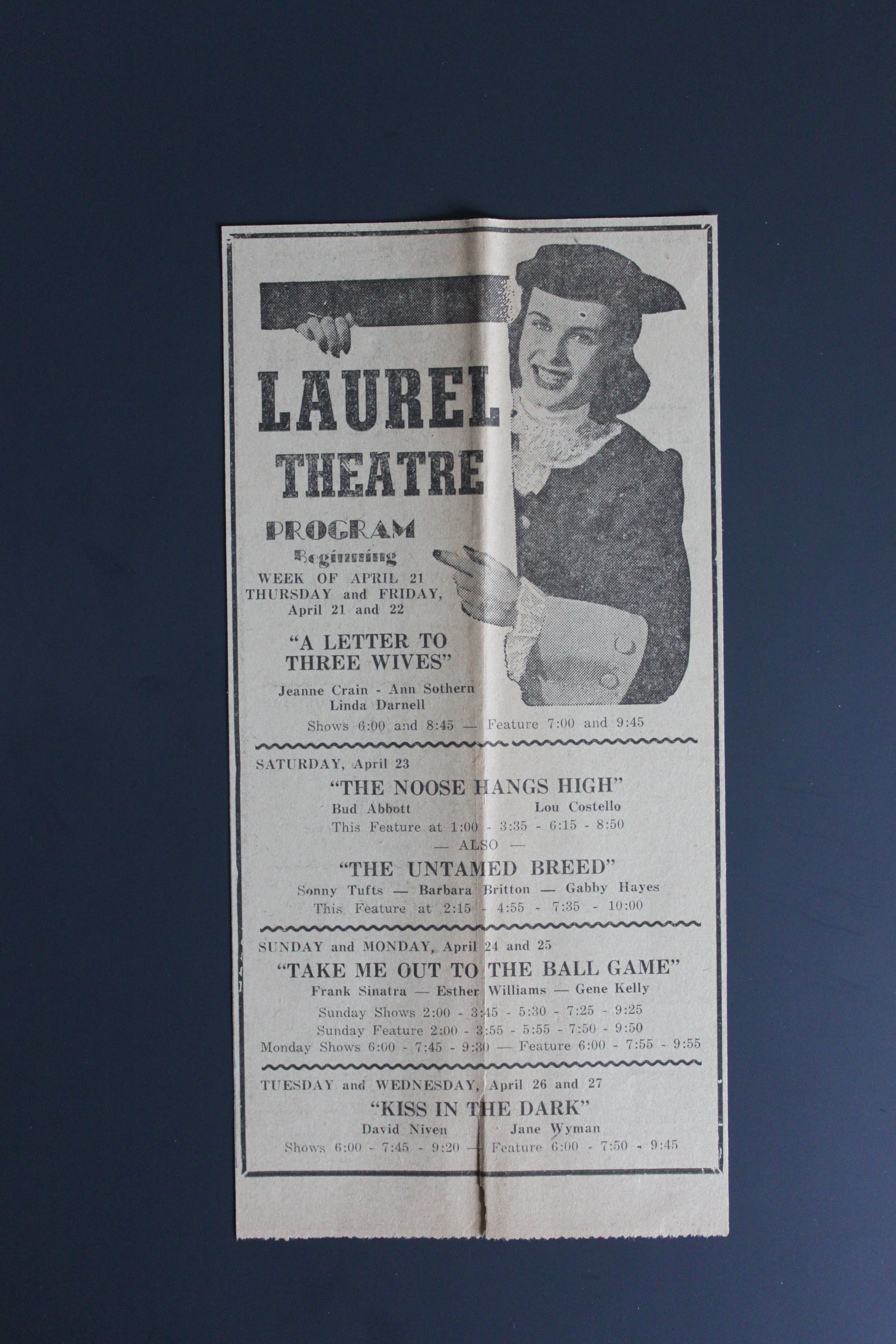 I’ve collected a few later (but still pretty darn early) programs from the theater, as has the Laurel Historical Society and collectors Peter and Martha (Kalbach) Lewnes. Here are a few: