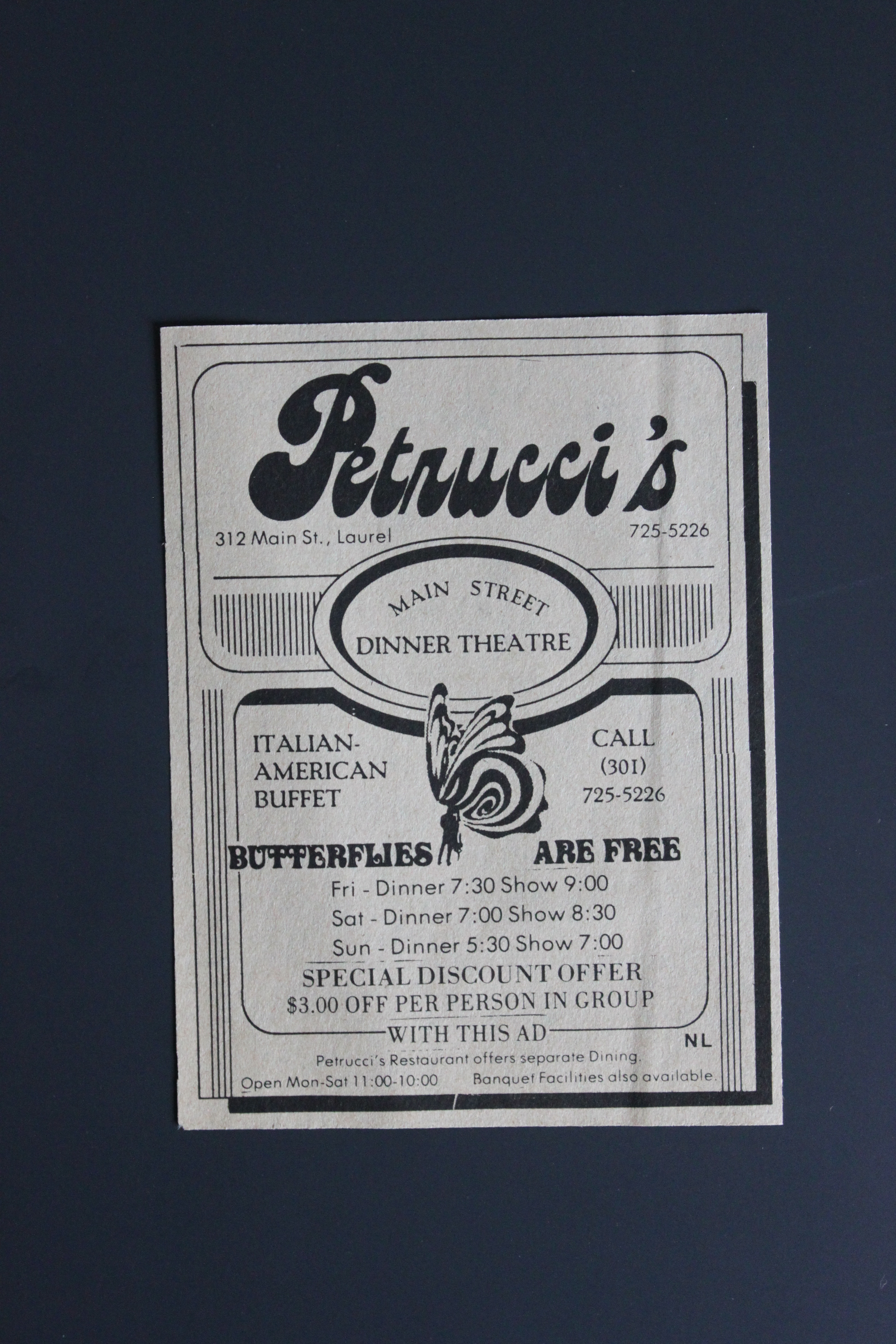 In less than a year, Petrucci’s was already experimenting with the idea of a full-fledged dinner theater—a concept never before tried in the area. And by the early 1980s, Petrucci’s Dinner Theatre was one of the indisputable highlights of Main Street.