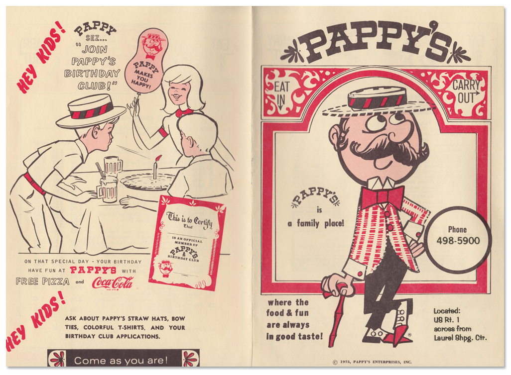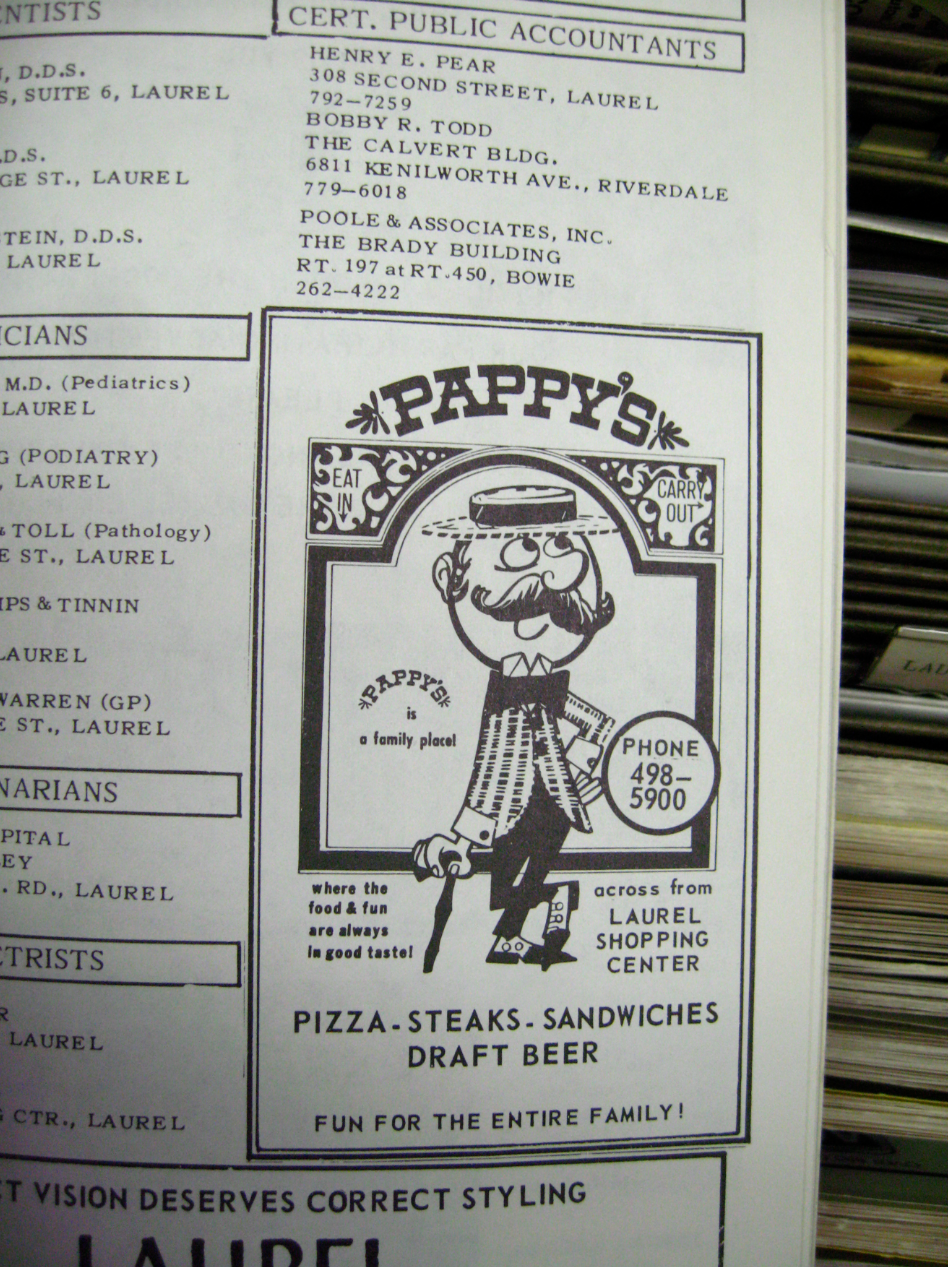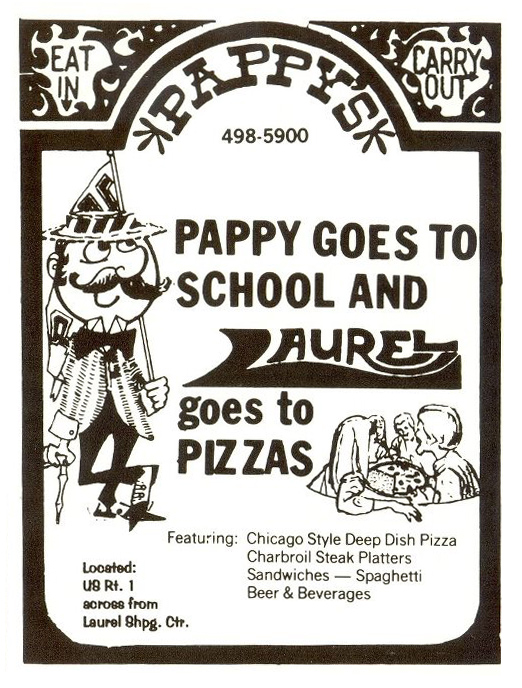 Pappy’s opened in 1976 in what is currently the Wells Fargo Bank on Route 1, directly across from Laurel Shopping Center.