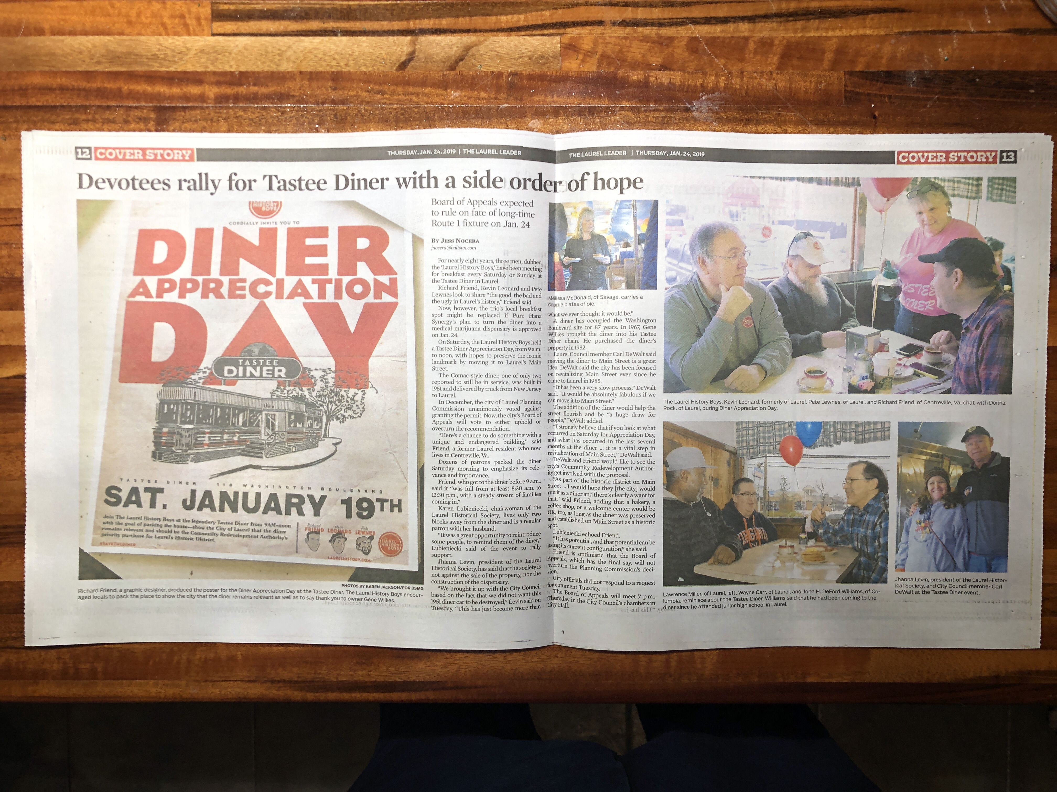 Now is the time for the City of Laurel to work with Mr. Wilkes on a way to purchase the Diner for the City’s Historic District. Mayor Craig Moe has already gone on the record, asking that Laurel be given the right of first refusal for any future sale—well, that availability is here. And with the help of state and county preservation grants, crowdfunding, and willing investors, it can be done—and the long term benefits would be immeasurable.