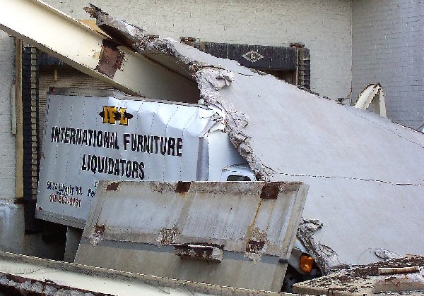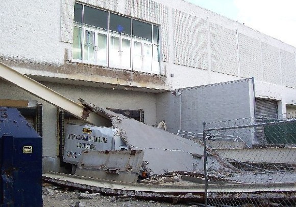 And driving past the old mall last week—just days after its official May 1st closing—the building looked essentially as it has since that upper parking deck spectacularly collapsed back in July 2005. Empty.