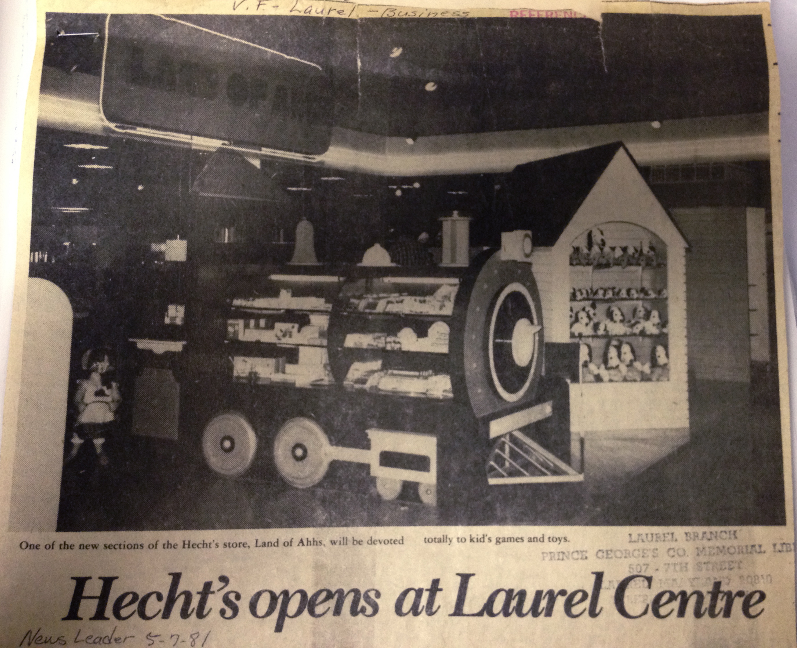 Thirty-one years ago this week, the Laurel Leader noted the opening of the brand new Hecht’s at Laurel Centre—completing the relocation from its original building in the open Laurel Shopping Center, where it had been since the early 1960s. It would go on to be the sole occupant of the new building until Hecht’s eventually folded, and became Macy’s.